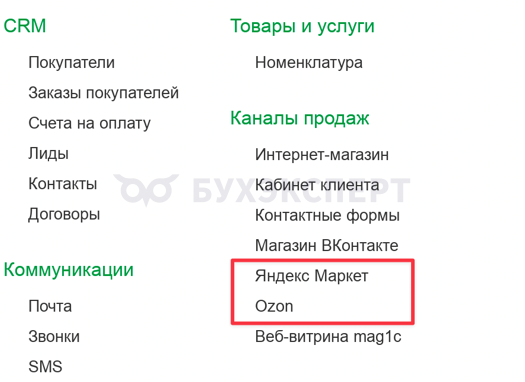 Панель настройки прямого обмена с маркетплейсами (CRM – Каналы продаж).