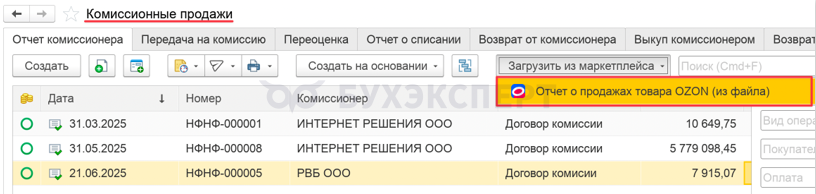 Механизм загрузки Отчетов о продажах (Продажи – Продажи – Комиссионные продажи).