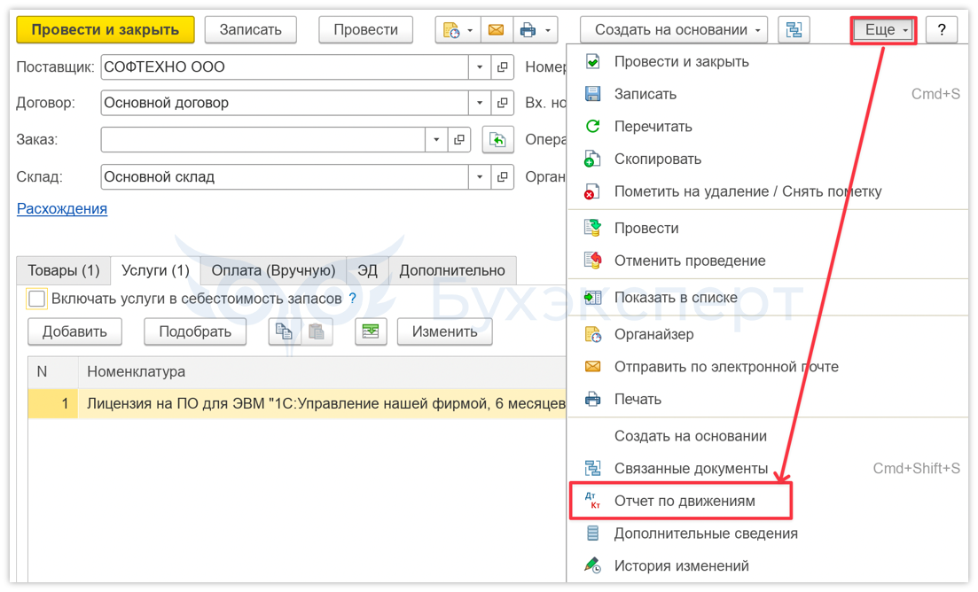 Как увидеть движения документа Приходная накладная