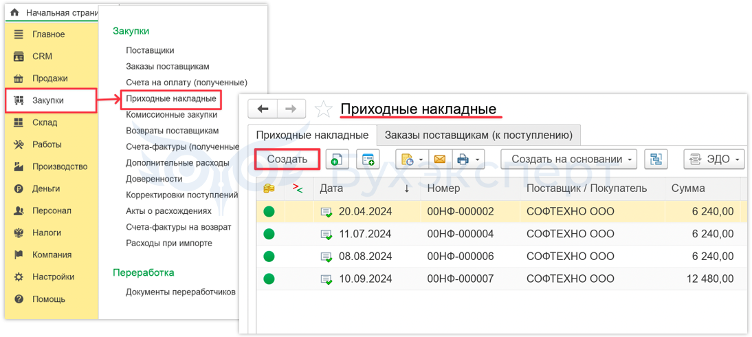 Закупки – Закупки – Приходные накладные
