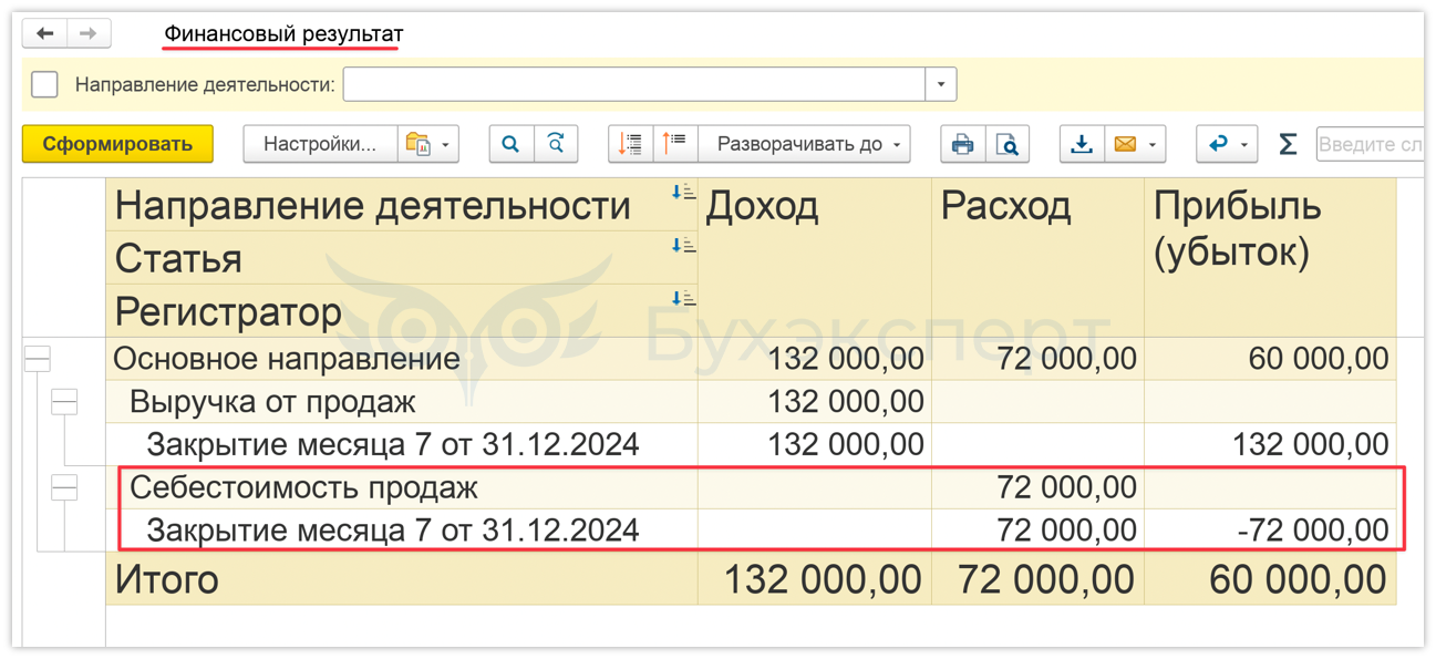 В 1С УНФ отчет Финансовый результат корректно формируется после закрытия месяца