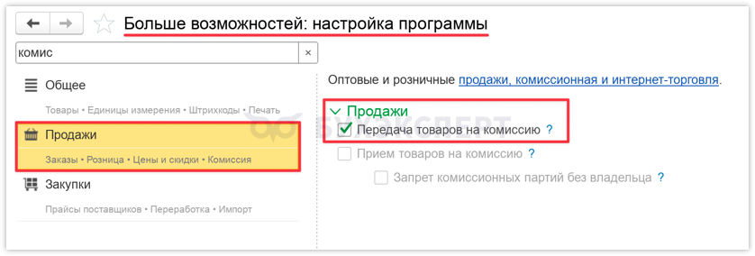 Включение возможности работы с маркетплейсами (Настройки – Настройки – Еще больше возможностей).