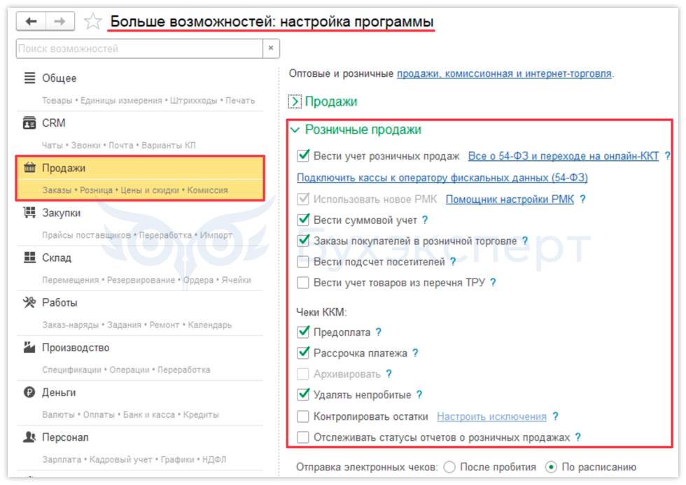 В типовую 1С УНФ включен полный функционал по розничным продажам (54-ФЗ и маркировка)