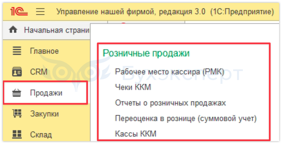 Продажи – Розничные продажи – Рабочее место кассира (РМК)
