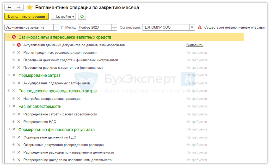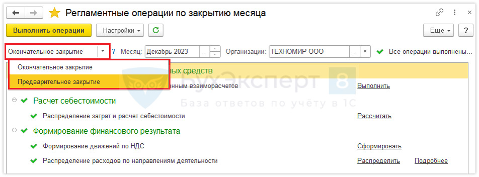 Финансовый результат и контроллинг – Закрытие месяца – Закрытие месяца