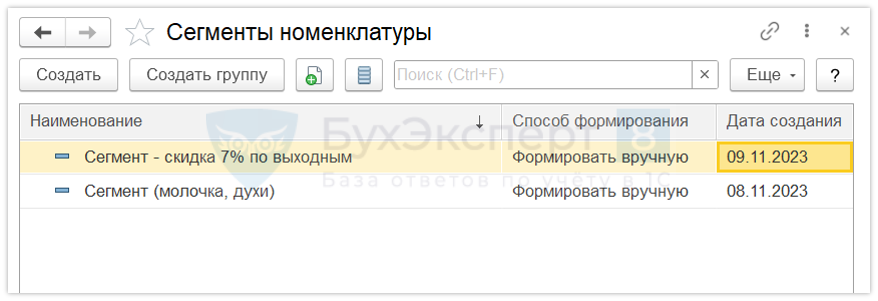 Сегмент номенклатуры – это дополнительная классификация товаров, которая используется при оформлении: