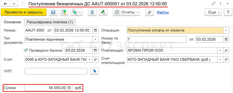 В УТ сформируйте документ Поступление безналичных и введите Счет-фактура выданный (аванс) на поступивший аванс.