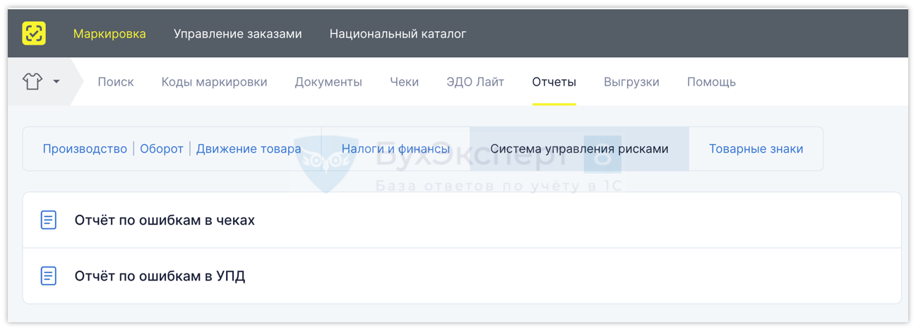 Личный кабинет Честного знака – Маркировка – Отчеты – Система управления рисками