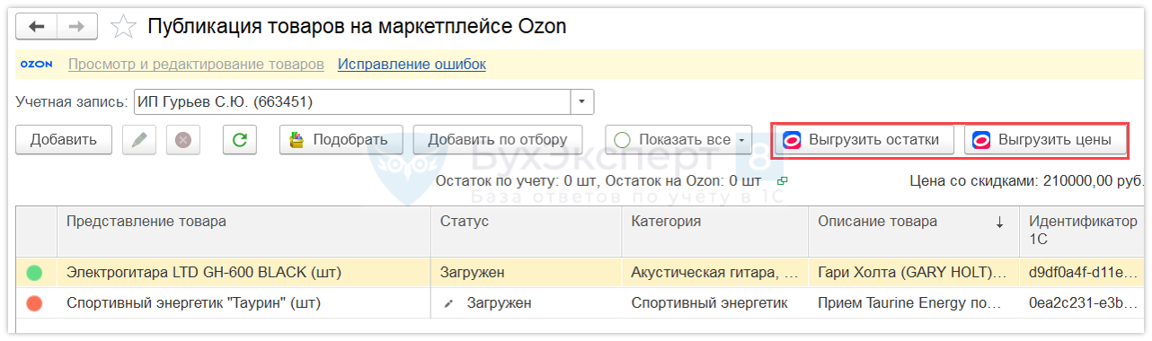 Комплексная выгрузка остатков и цен на OZON в УТ