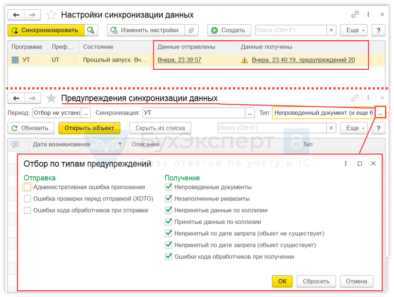 Результат контролируем через панель состояния обмена: