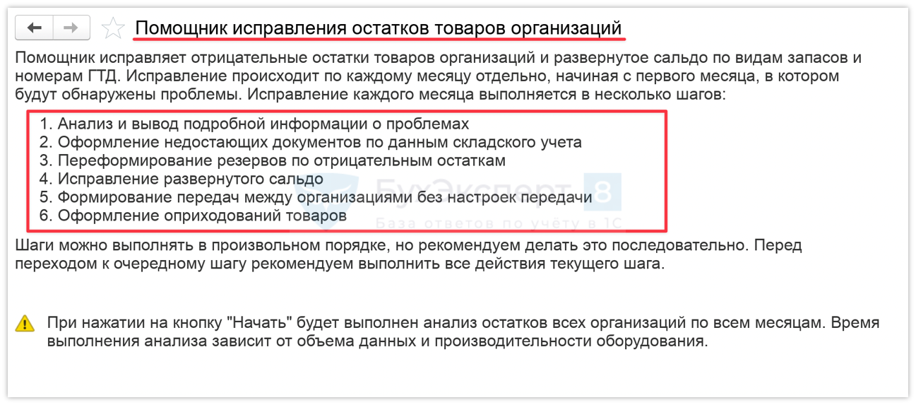 Помощник исправления остатков организации поможет автоматически сформировать необходимые складские документы