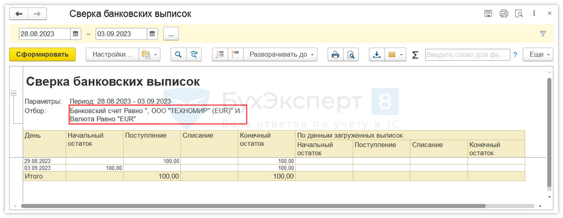Или сформировать отчет Сверка выписок из формы списка Безналичные платежи.