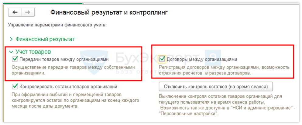 Затем перейдите в настройку передачи товаров между организациями Финансовый результат и контроллинг – См.также – Настройки передачи товаров между организациями.