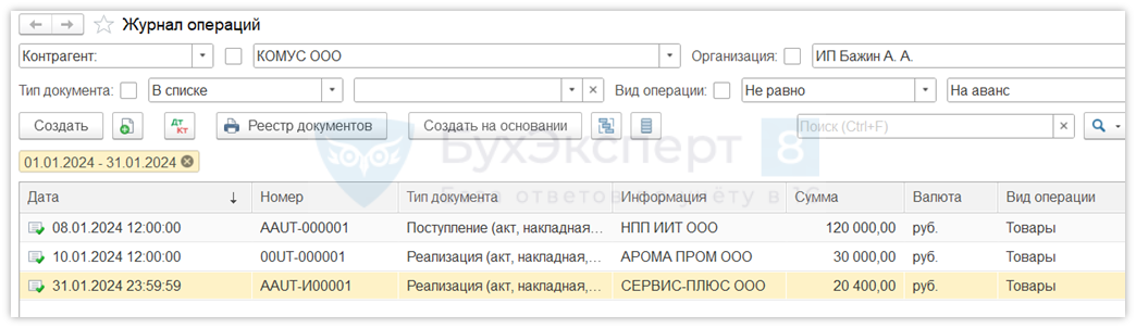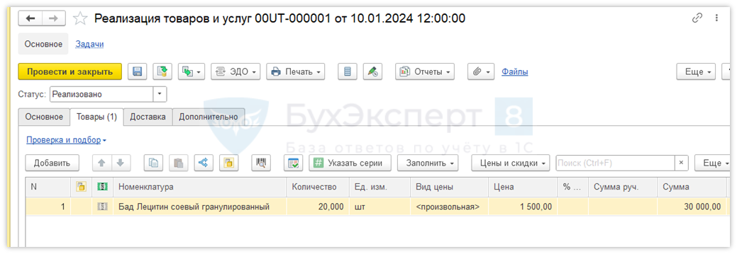 После синхронизации данных документы закупки, реализации и межфирменных продаж появятся в 1С Бухгалтерия предприятия 3.0.
