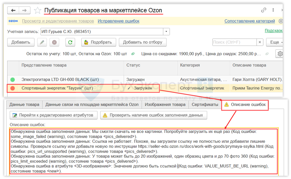 Продажи – Сервис – Продажи на OZON – Публикация товаров– Публикация товаров на маркетплейсе OZON