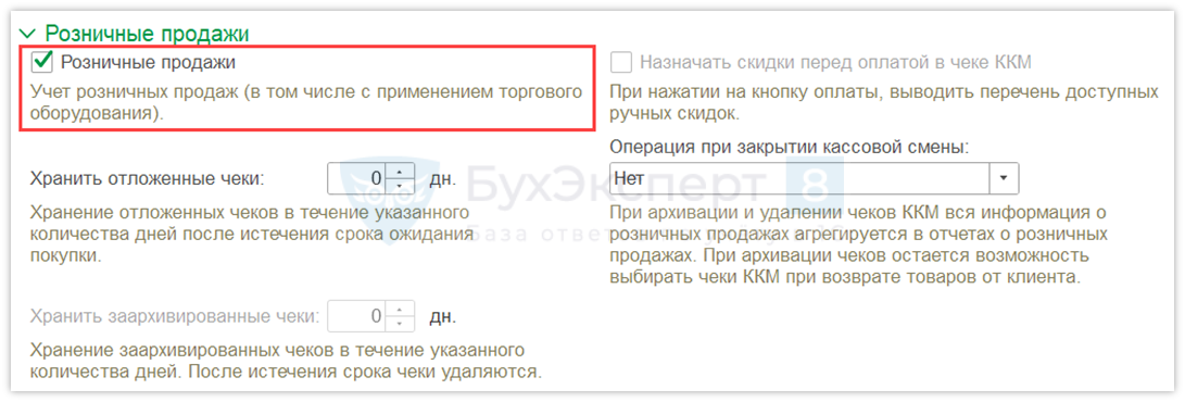 Пошаговая инструкция Настройки розничных продаж в 1С УТ 11.5 (BuhExpert8).