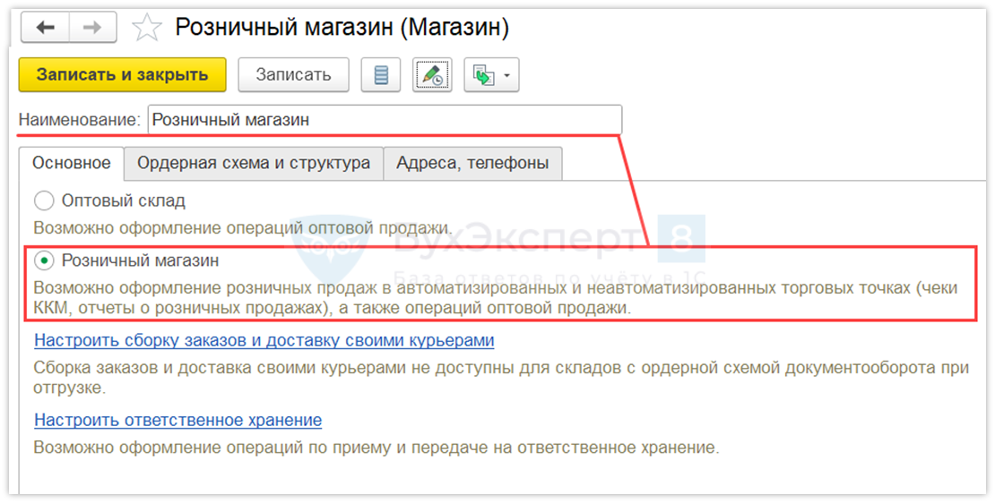 Установите формат склада — Розничный магазин.