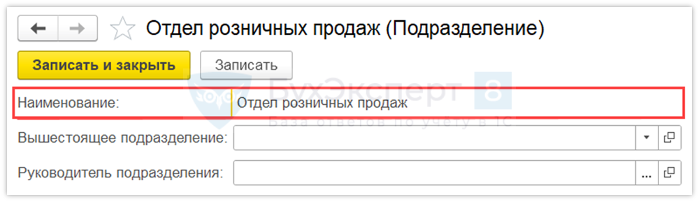 Создайте справочник Подразделение для отдела розничных продаж в разделе НСИ и администрирование — Структура предприятия – Создать.