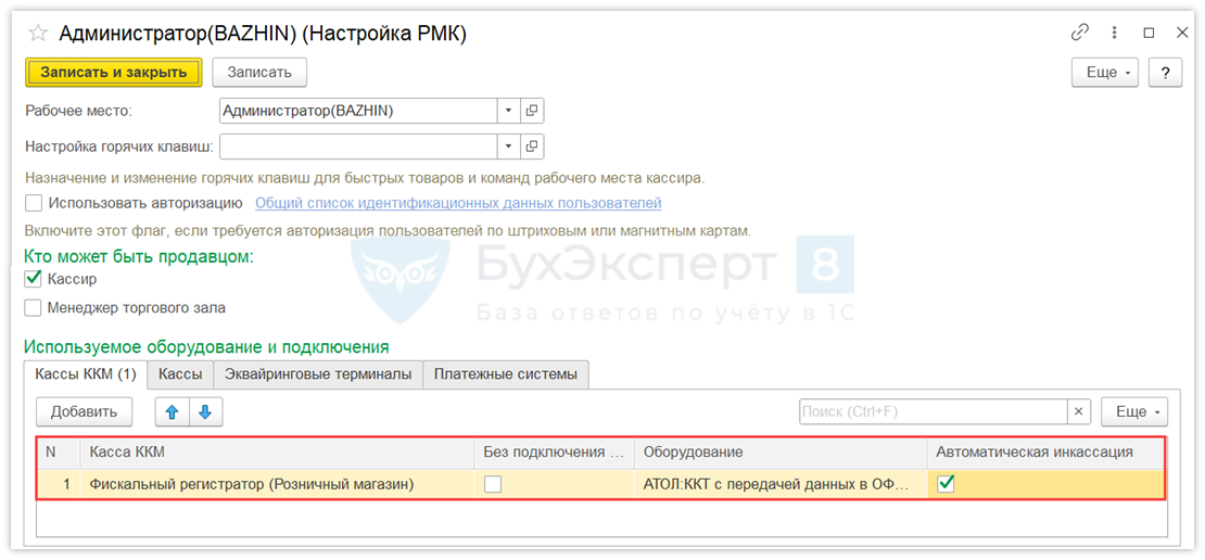 Шаг 4. Настройка рабочего места кассира