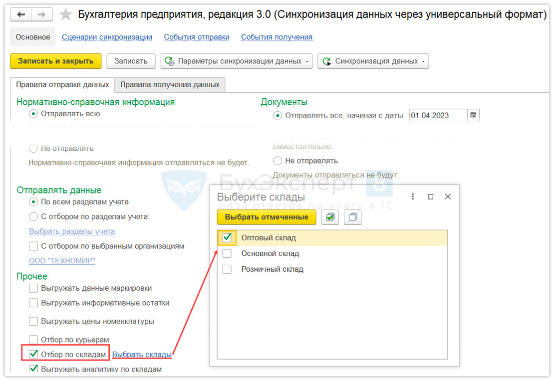 Инструкция по настройке синхронизации между УТ и БП с отбором по складам