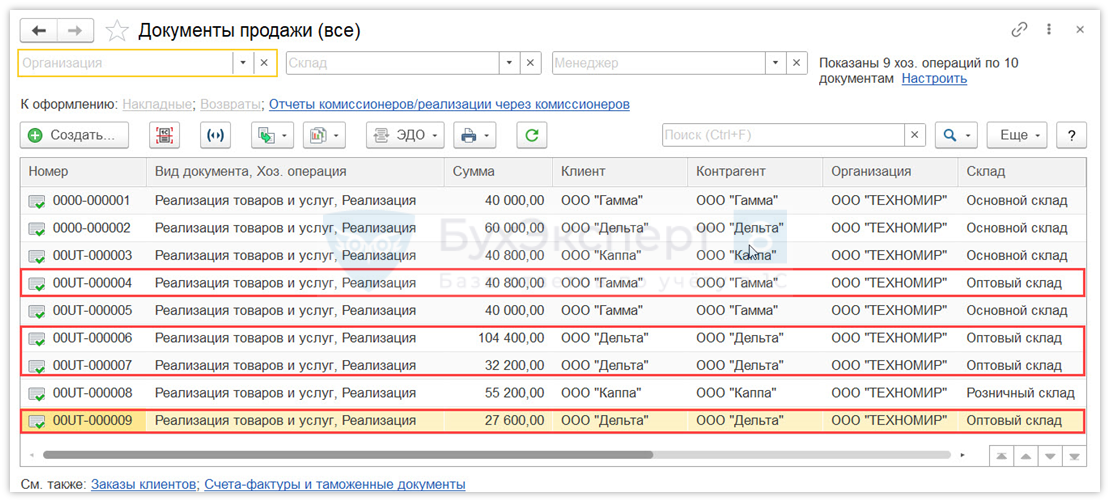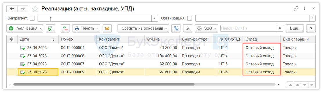 После синхронизации проверьте результат: в БП из УТ выгружены только документы по выбранному складу организации.