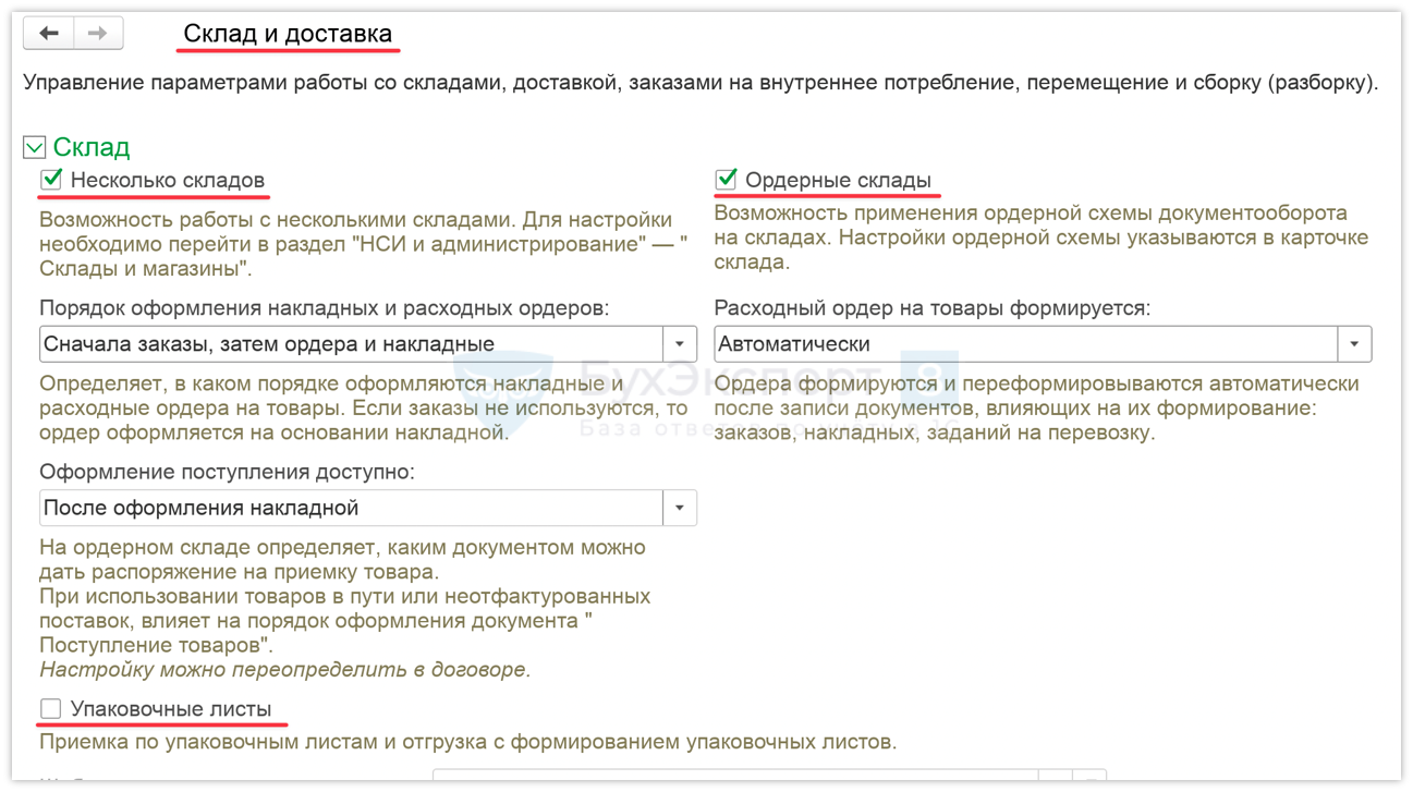 Где в УТ 11 необходимо устанавливать настройки складского хранения