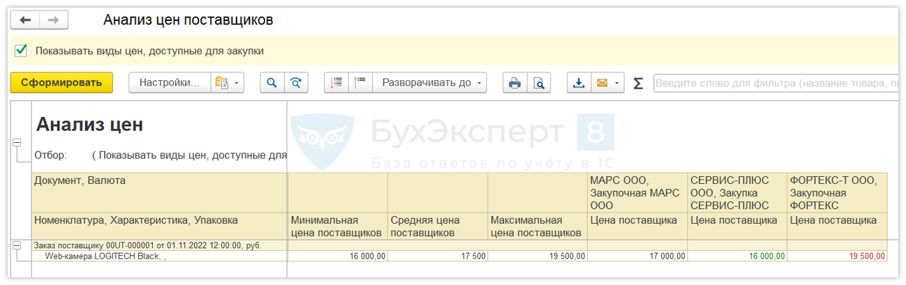 Закупки – Цены поставщиков (прайс-листы) – Несколько видов цен
