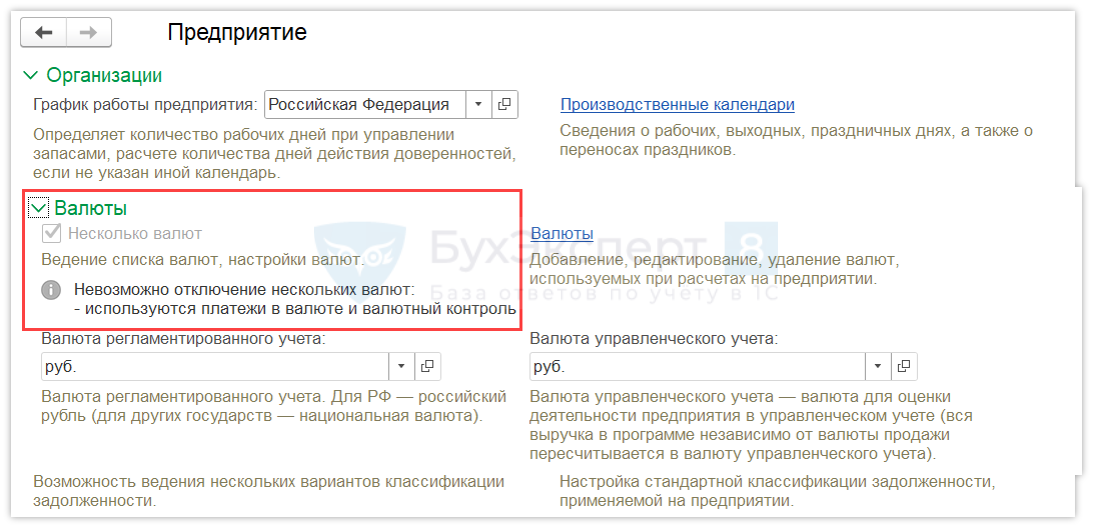 Необходимо включить возможность работы с несколькими валютами в УТ 11: