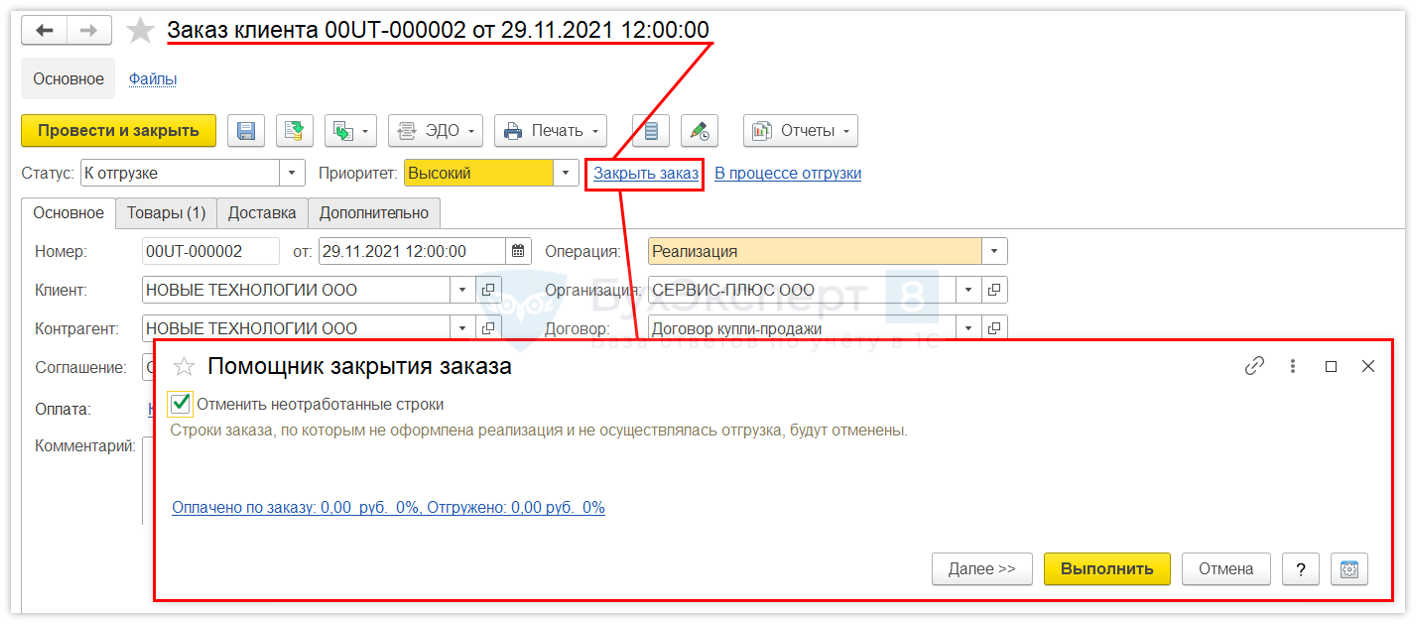Правильно закрываем Заказ клиента с помощью Помощника: