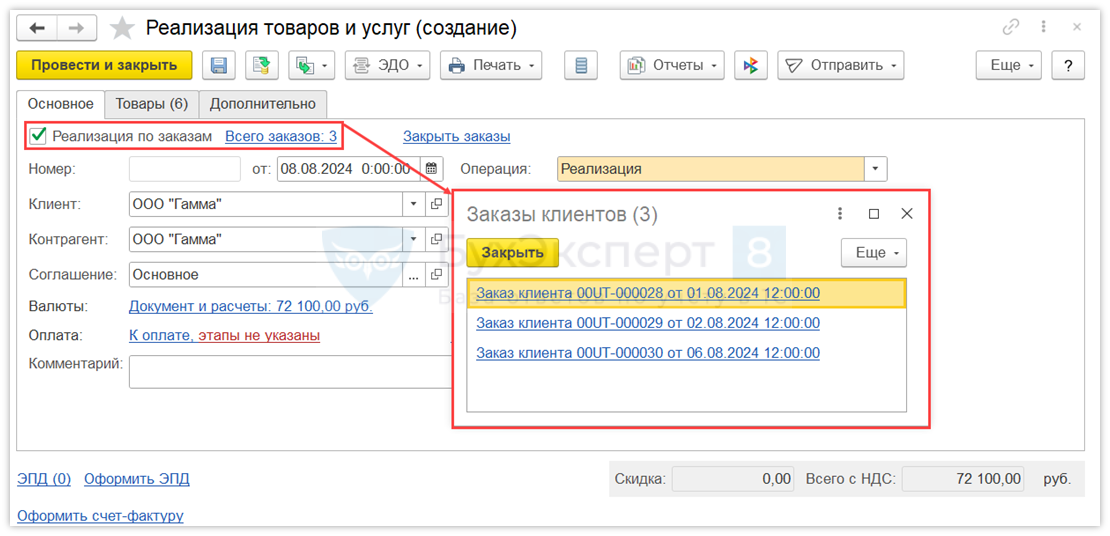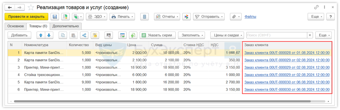 Оформление продажи по нескольким заказам в 1С УТ 11.5