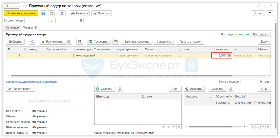 При использовании ордерной схемы документооборота документы Приобретение товаров и услуг и Реализация товаров и услуг не создают движения по складам организации. Для этого непосредственно работник склада оформляет при приемке или отгрузке складские документы: Приходный ордер на товары или Расходный ордер на товары.