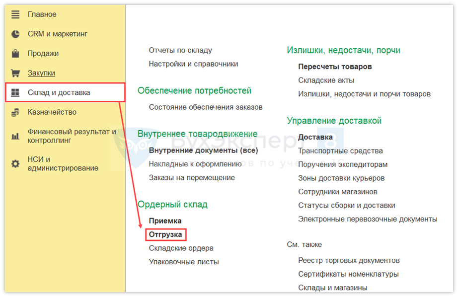 Перейдите в раздел Склад и доставка — Отгрузка.