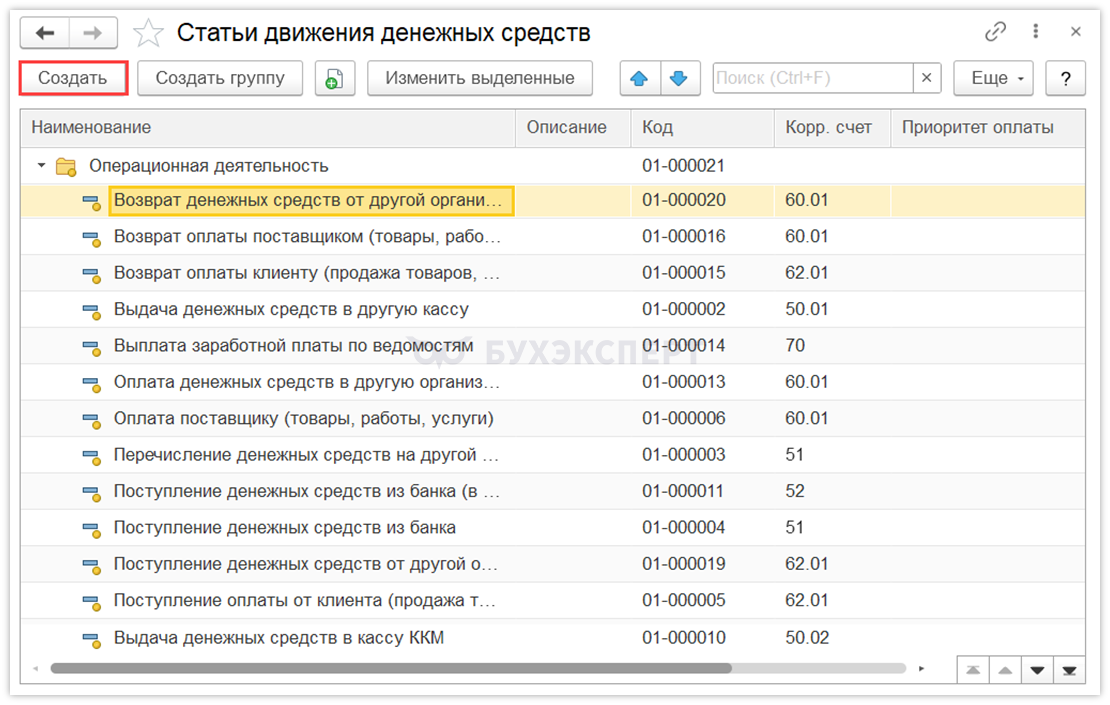 Статьи движения денежных средств предназначены для классификации операций с денежными средствами организации.