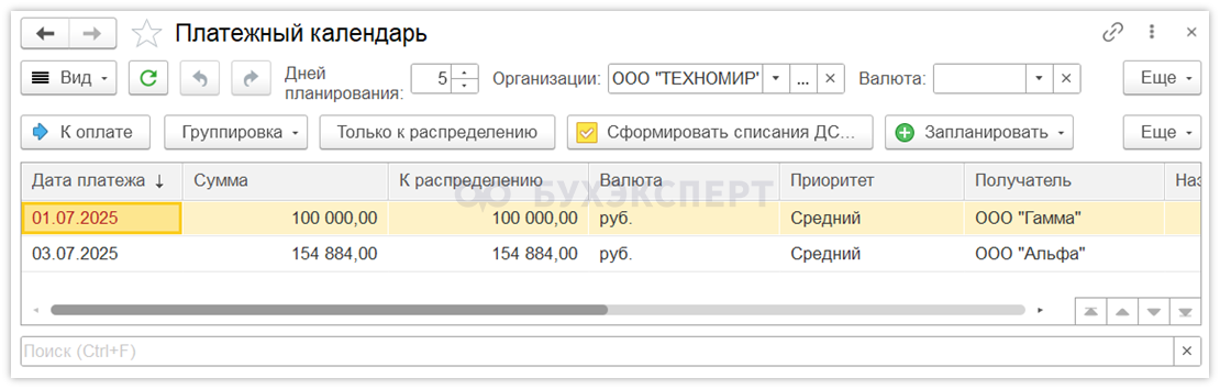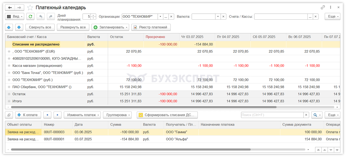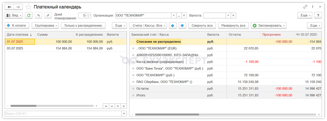 Платежный календарь помогает составлять график платежей и следить за его выполнением.