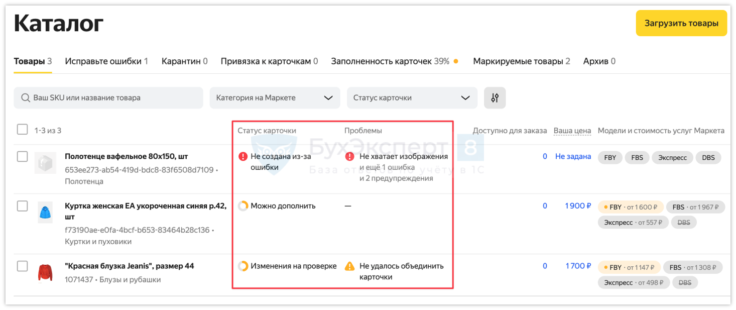Обработка Публикация товаров на Яндекс Маркет