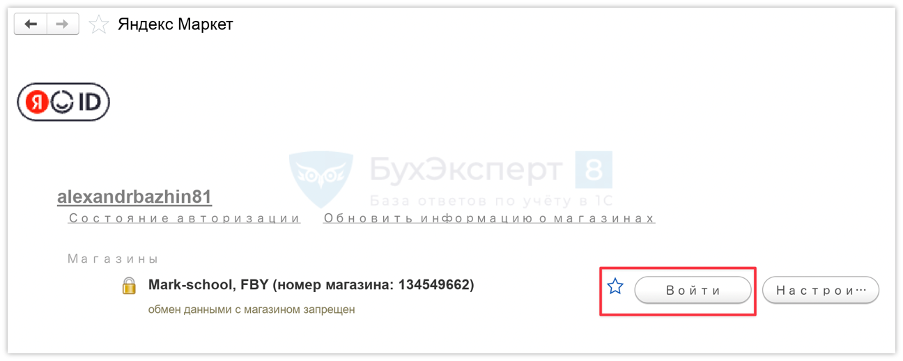 Панель обмена с Яндекс Маркет