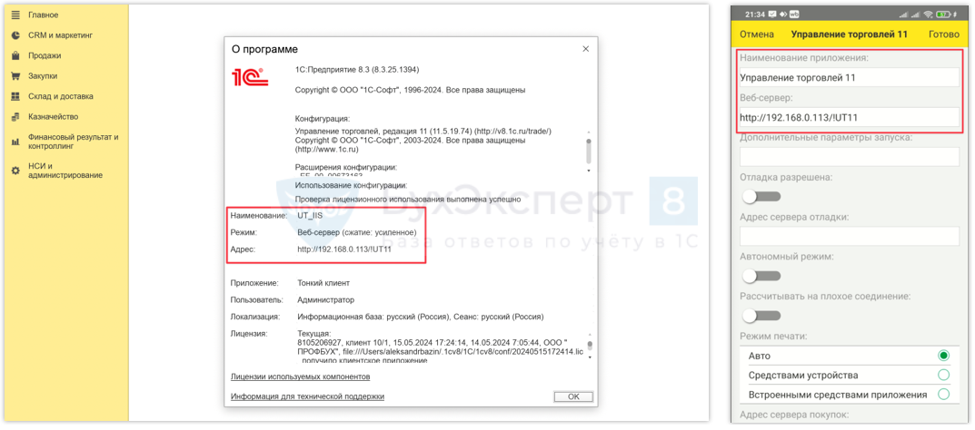 Мобильное приложение УТ 11 использует соединение c основной базой по протоколу HTTP(S)