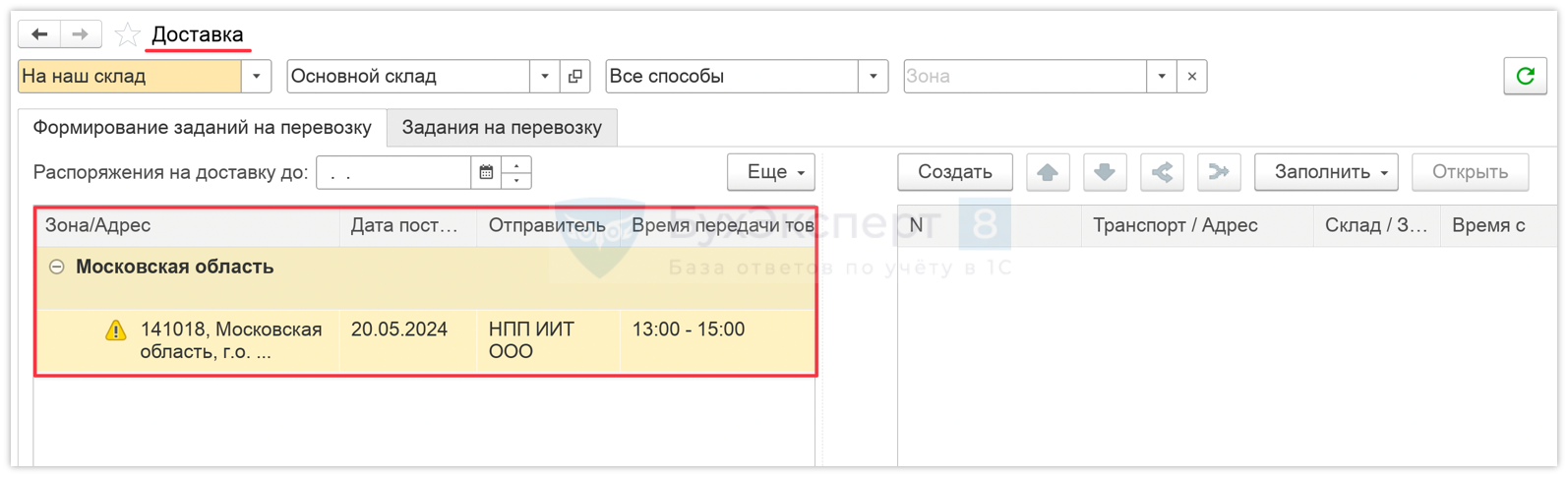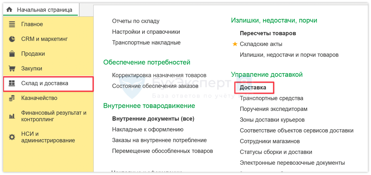 Мастер доставки (Склад и доставка – Управление доставкой – Доставка).