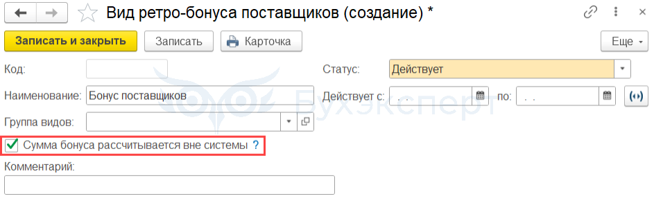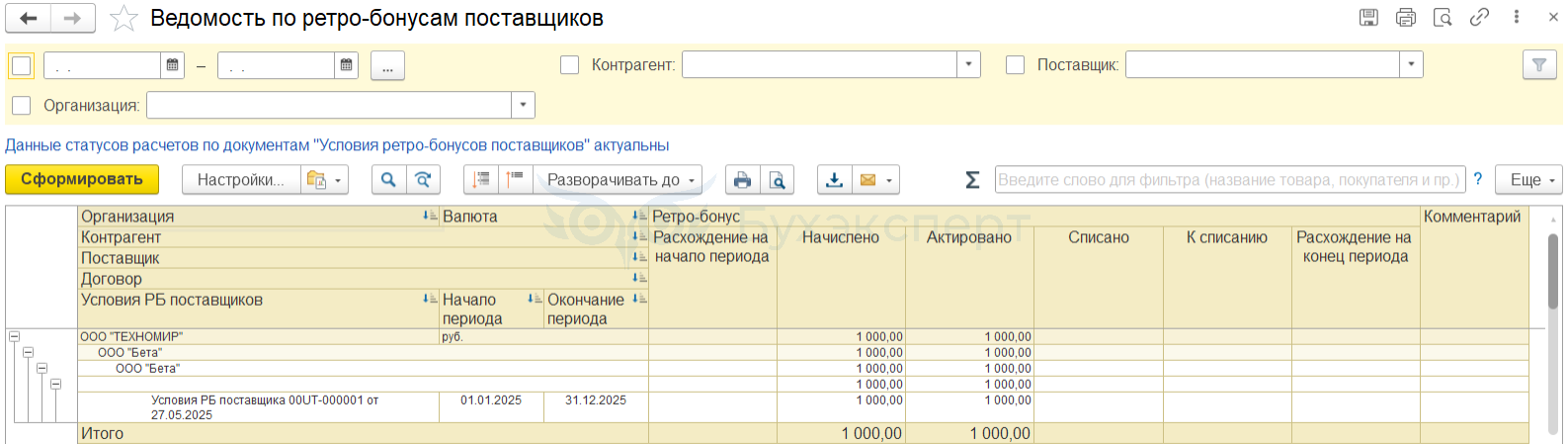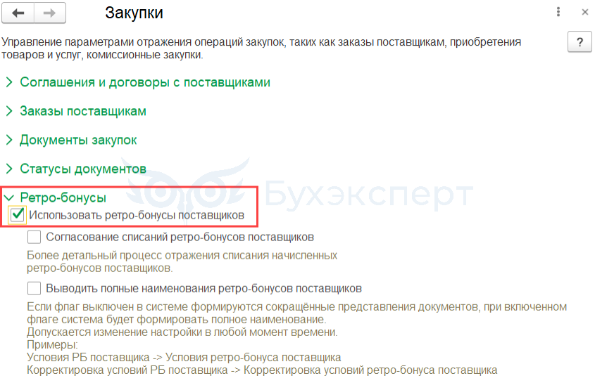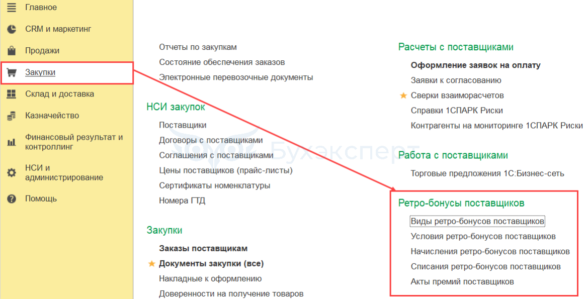 НСИ и администрирование – Закупки – Ретро-бонусы.