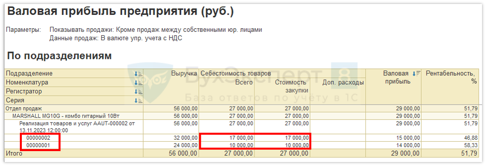 Финансовый результат и контроллинг – Отчеты по финансовому результату –  Валовая прибыль предприятия