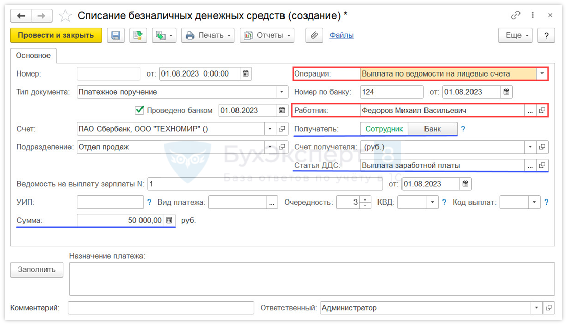 Выплата заработной платы на платежные карты или лицевые счета сотрудников