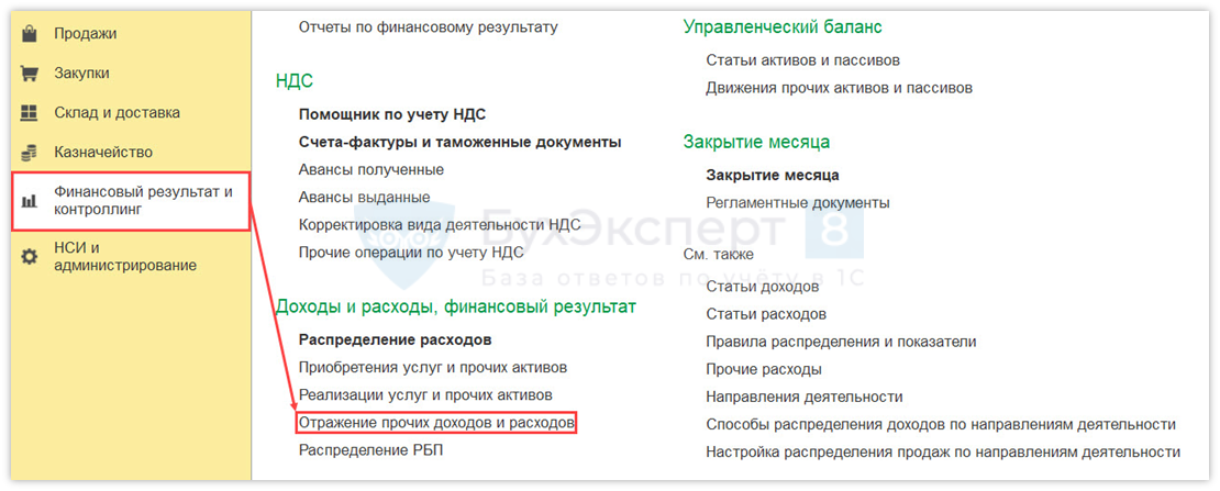 Перейдите в раздел Финансовый результат и контроллинг — Отражение прочих доходов и расходов.
