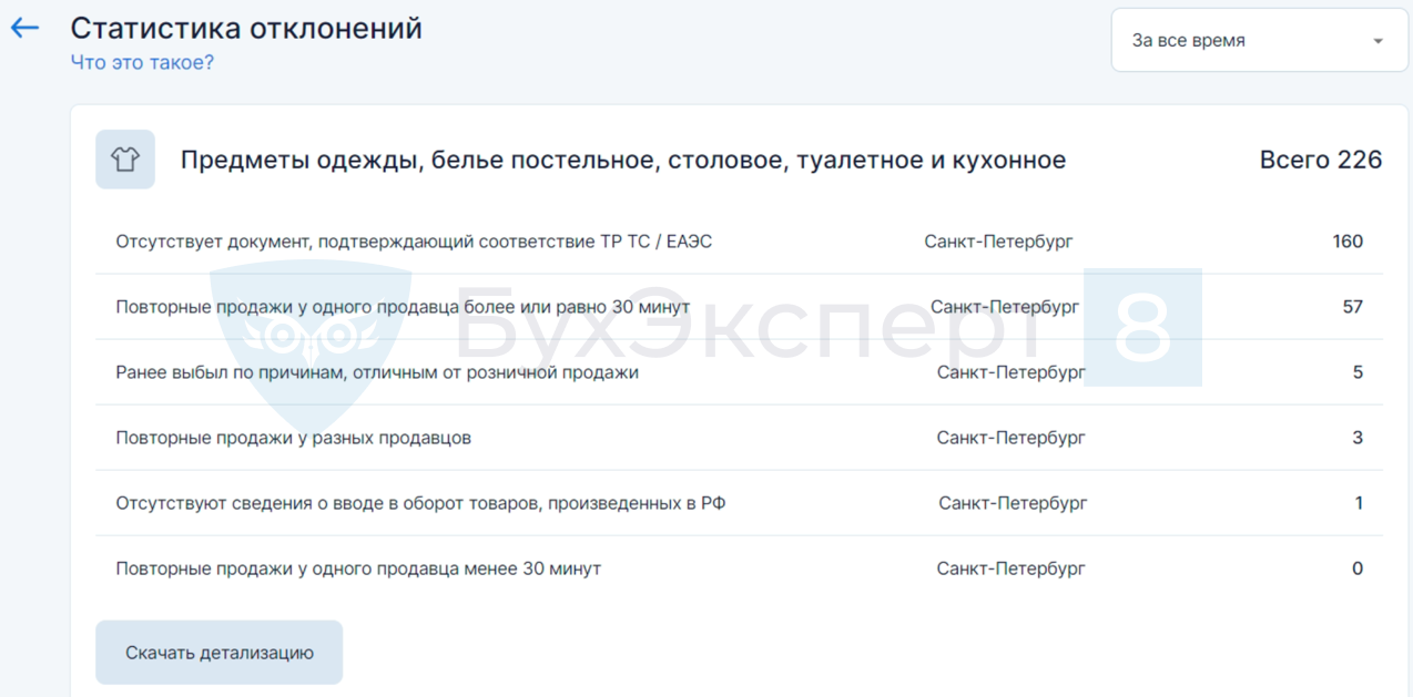 Личный кабинет Честного знака – Маркировка – Статистика отклонений.