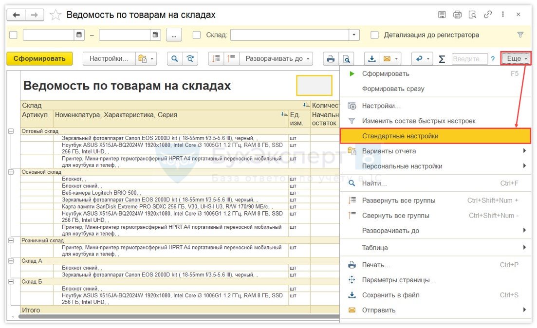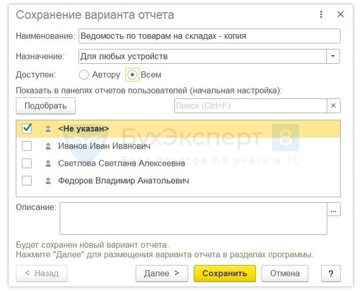 - нажав кнопку Еще – Варианты отчета – Сохранить как…