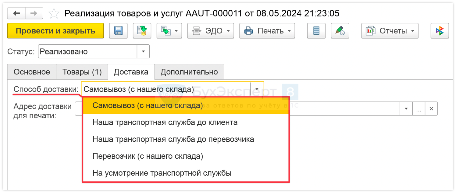 Настройка справочника Транспортные средства (Склад и доставка – Управление доставкой – Транспортные средства).