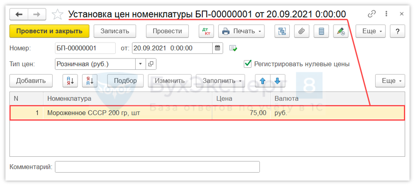 - документы Установка цен номенклатуры, Регистрация цен поставщика;