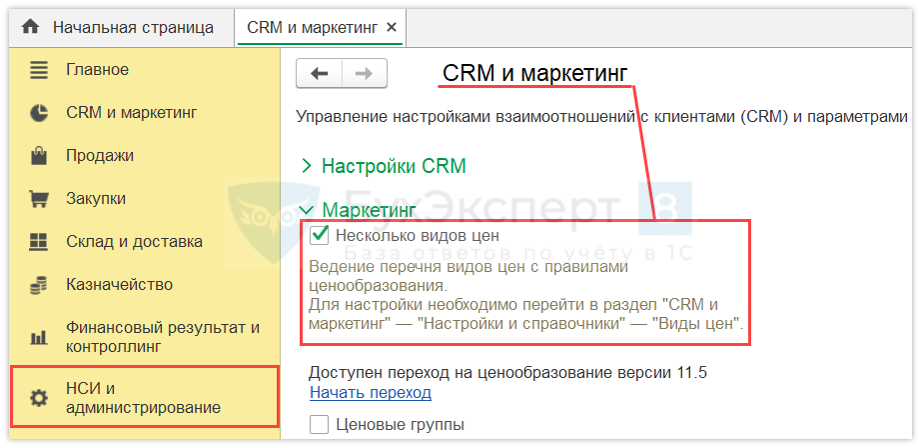 НСИ и администрирование – Настройка НСИ и разделов – CRM и маркетинг – Маркетинг – Несколько видов цен
