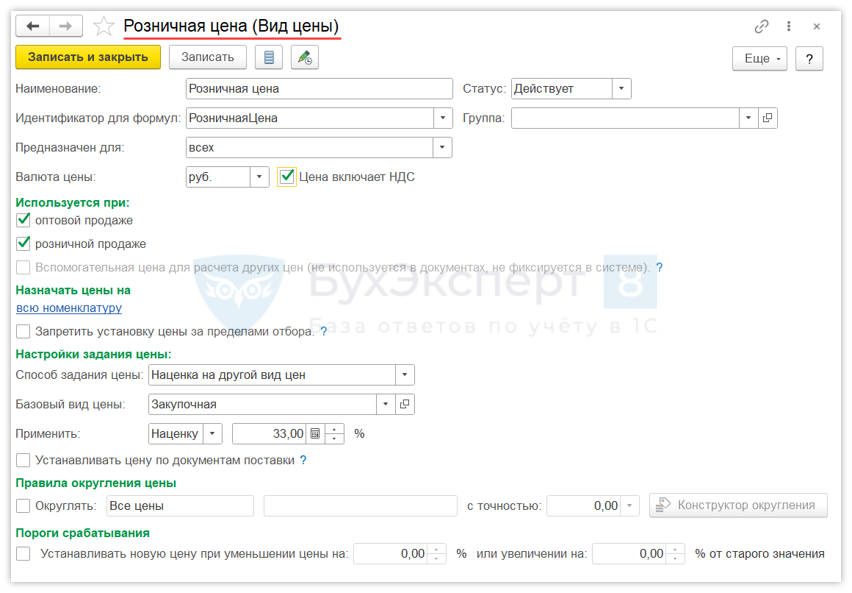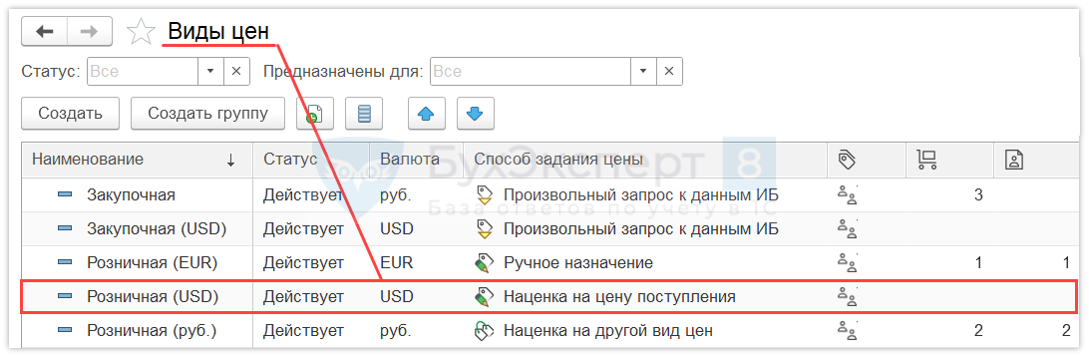 CRM и маркетинг – Настройки и справочники – Виды цен