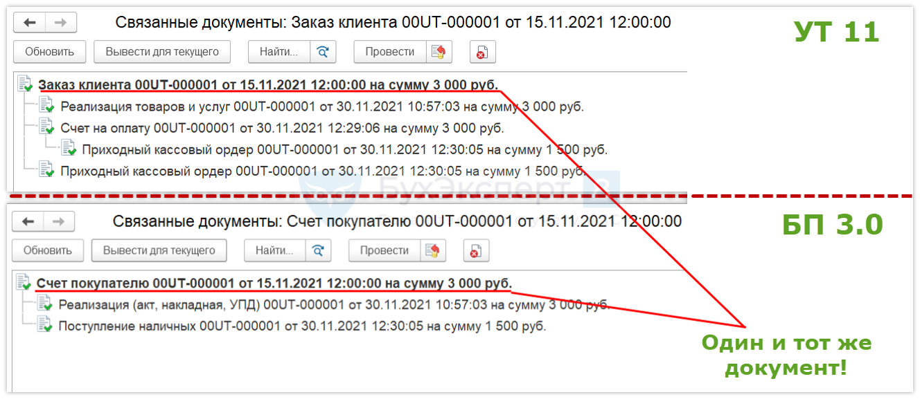 При выгрузке объектов из УТ 11 в БП происходит трансформация документа Заказа клиента (УТ 11) в Счет на оплату (БП).