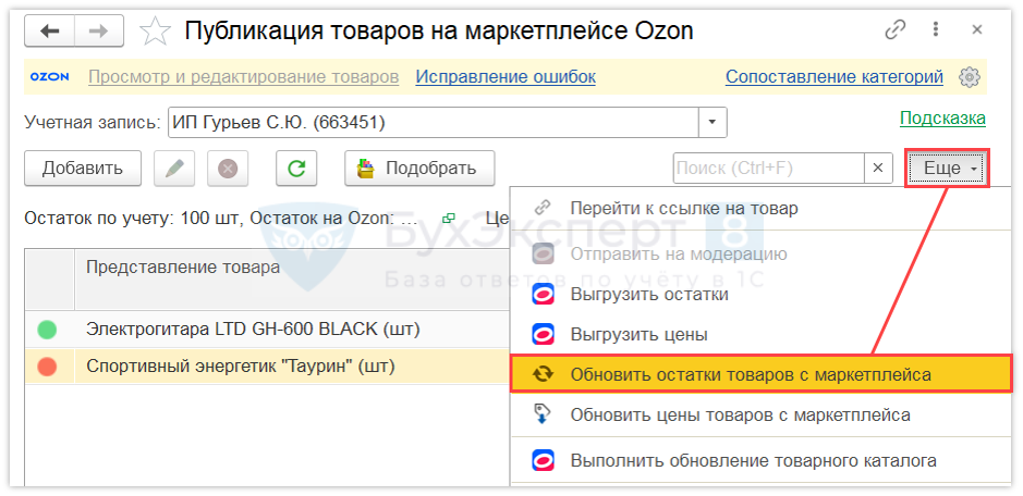 Продажи – Сервис – Продажи на OZON – Публикация товаров– Публикация товаров на маркетплейсе OZON